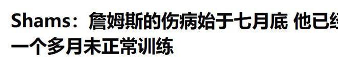 北青网:(Shams:詹姆斯的伤病始于七月底 他已经一个多月未正常训练2025.10.11)